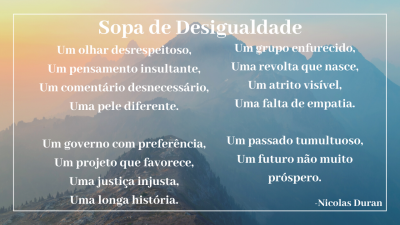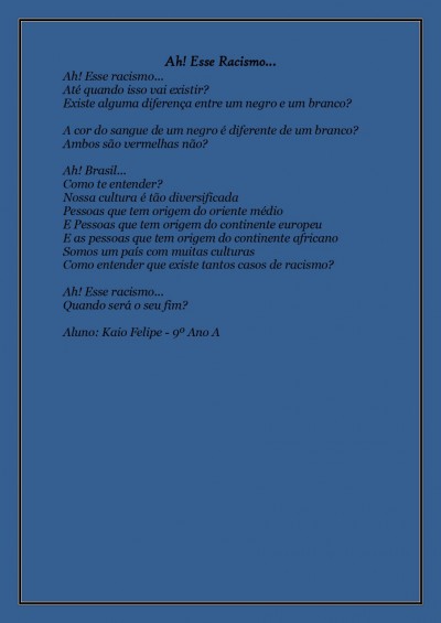 A história de cada um nos faz pensar no quanto deveríamos ser mais gentis uns com os outros, porque não sabemos o que cada um sente, passa, faz, sem julgar pela aparência, estilo ou raça, e a tensão racial acaba com a harmonia de uma sociedade, destrói vidas, famílias e traz medo, desordem, raiva, culpa. E é um assunto que não é sempre falado por simplesmente não entendermos completamente o modo de vida daqueles que sofrem mais. É de extrema importância lutar contra essa tensão porque ninguém deveria ser julgado pela cor de pele. Com isso percebe-se que falta mais interesse em conhecer o próximo, cuidar de sua própria vida, falta menos julgamento e mais apoio.